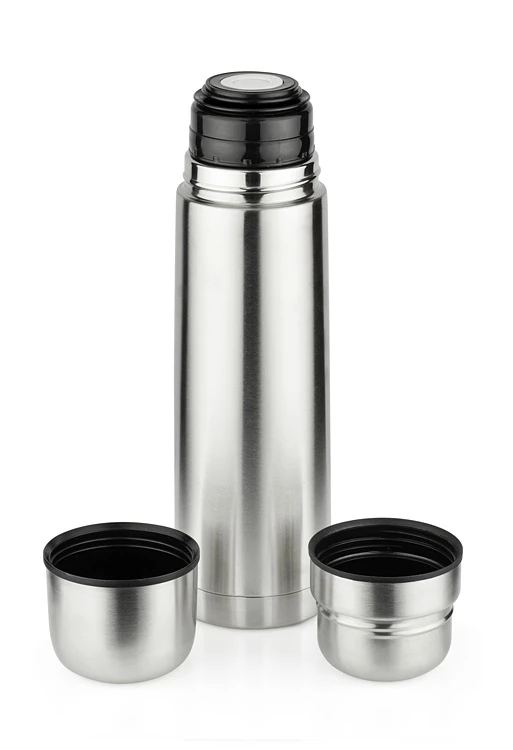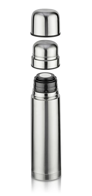 Duży termos z dwoma kubkami będzie idealny podczas jesienno- zimowych wycieczek. Oba kubki umieszczone są na górze termosu. Termos wykonany ze stali nierdzewnej, posiadający podwójne ścianki. Pojemność termosu 750 ml, nakrętki-kubeczka 100 ml. Logo wygrawerujemy.