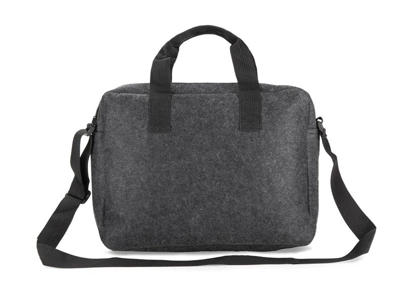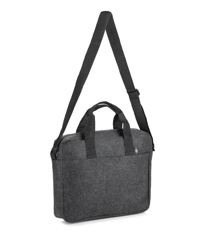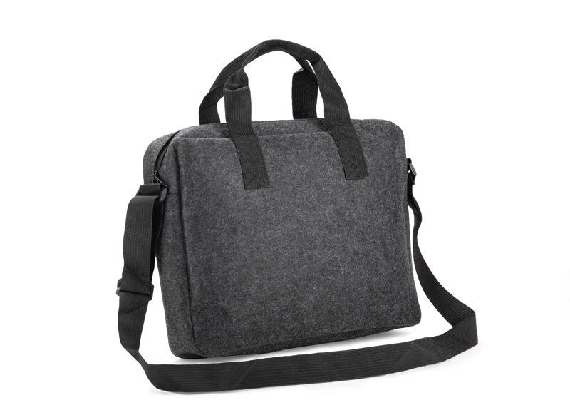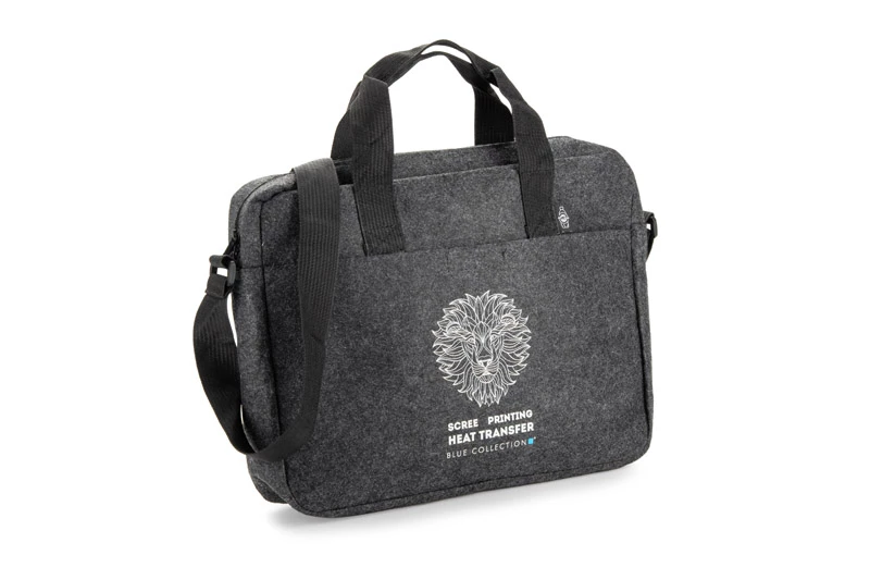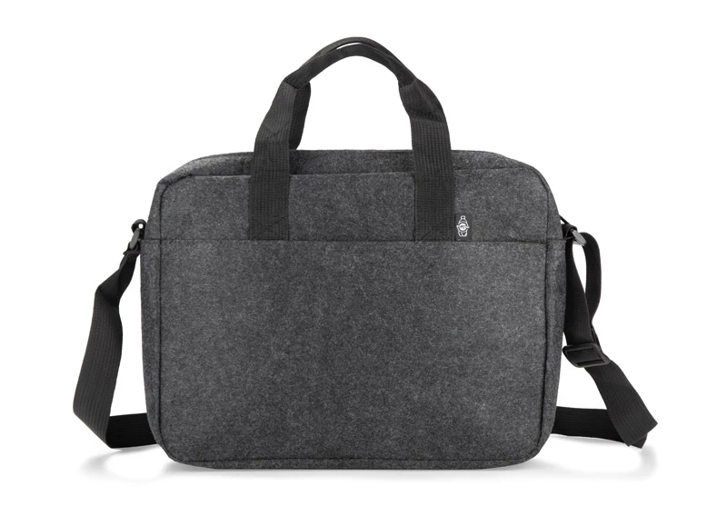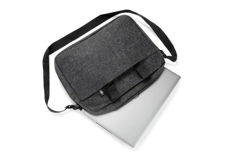Torba na laptopa TEKKO wykonana jest z recyklingowego filcu rPET, co zapewnia jej trwałość i lekkość. Posiada krótkie uchwyty do trzymania w ręku oraz regulowany, długi pasek do noszenia na ramieniu. Główna komora, bez dodatkowych przegródek, zamykana jest na suwak. Z przodu znajduje się kieszonka na drobiazgi, zapinana na rzep. Prosty i funkcjonalny design sprawia, że torba sprawdzi się w codziennym użytkowaniu. Możliwość znakowania czyni ją atrakcyjnym gadżetem reklamowym.