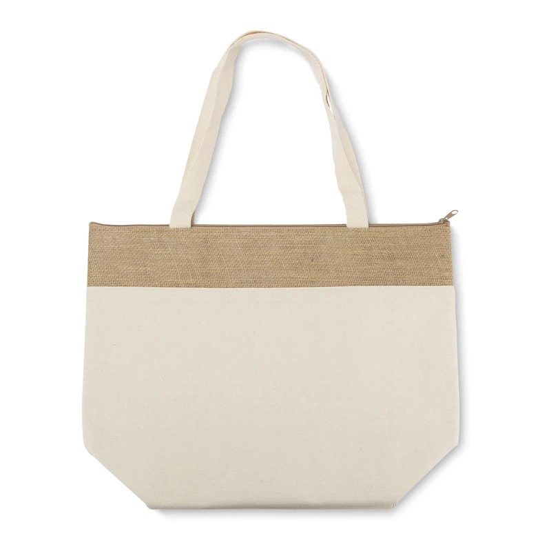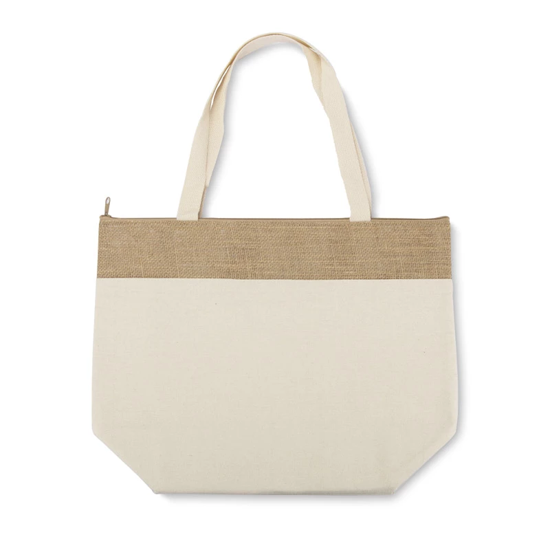 Bawełniana torba JUTO o gramaturze 340 g/m² to wyjątkowo praktyczny gadżet reklamowy. Długie uchwyty torby zapewniają wygodę noszenia na ramieniu, a szerokie dno umożliwia łatwe pakowanie większych przedmiotów. Jutowe wykończenie torby JUTO nadaje jej naturalny charakter i wyróżnia ją spośród innych modeli. Największym atutem torby jest warstwa termoizolacyjna, która skutecznie utrzymuje temperaturę przenoszonych produktów, idealnie sprawdzając się na zakupy, pikniki czy plażę. Duża powierzchnia do znakowania pozwala na skuteczną promocję marki.