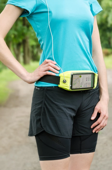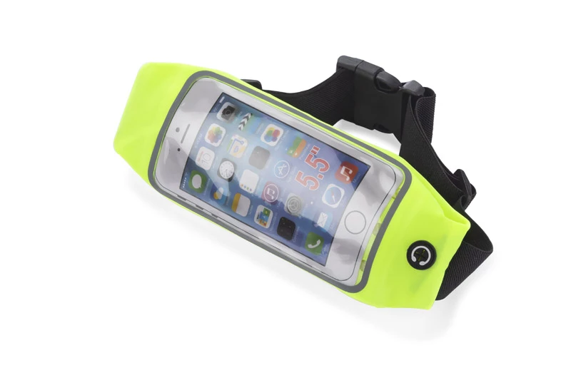 Sportowa elastyczna torebka biodrowa TROTE przyda się każdemu kto lubi aktywnie spędzać czas. Jaskrawy kolor oraz elementy z taśmy odblaskowej zapewnią każdemu użytkownikowi widoczność po zmroku. Torebka wyposażona jest w kieszonkę z wygodnym okienkiem na telefon, dzięki któremu łatwo i szybko można sprawdzić ważne informacje na telefonie. Dodatkowo torebka ma wyjście na słuchawki.