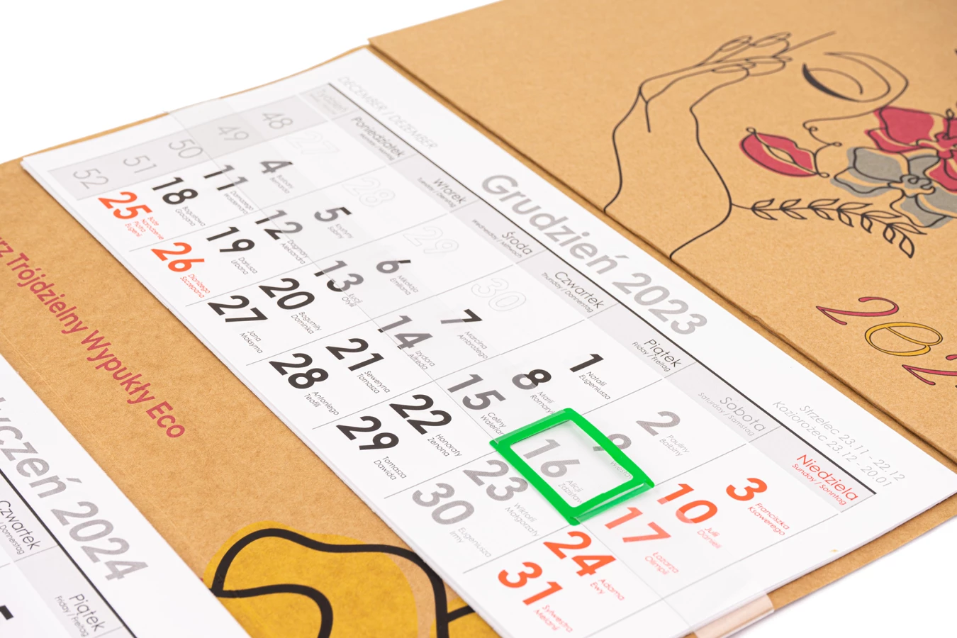 Inne: miejsce na reklamę pomiędzy kalendariami, czerwone okienko