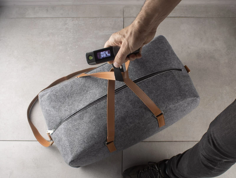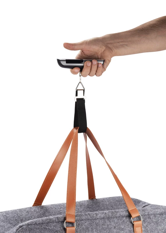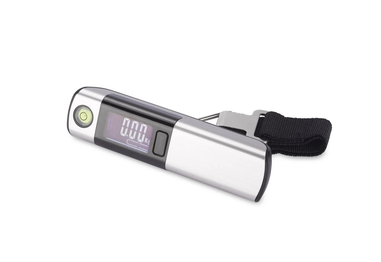 Waga do bagażu TRAVELI z wbudowanym ekranem LED pokazującym wagę w 3 jednostkach: Oz, Lb, Kg. Funkcja tary, wskaźnik naładowania baterii, alarm przy przekroczeniu wagi walizki (20kg), wskaźnik wagi - skala 0-20 kg, dokładność pomiaru mieści się ±3% w granicach błędu. Maksymalne obciążenie: 50 kg. Dodatkowo produkt wyposażony w miarę o długości 1 metra oraz poziomnice. Urządzenie zasilane jest baterią CR2032, która nie jest dołączona do produktu.
