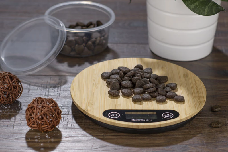 Elektroniczna waga kuchenna CIRCA wykończona naturalnym bambusem.
