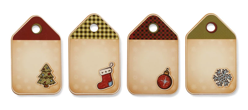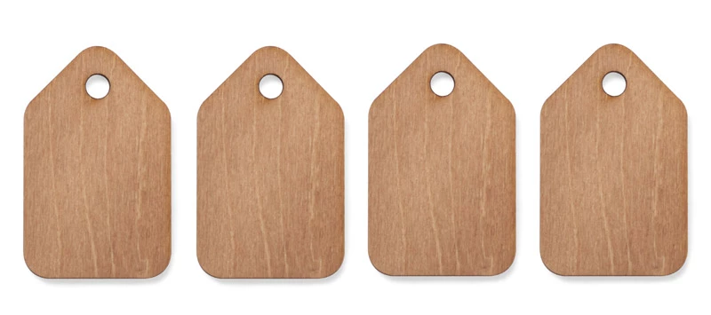Zestaw zawieszek z nadrukami świątecznymi. Do zawieszenia jako ozdoba choinkowa lub jako zawieszka na prezenty. W zestawie znajdują się cztery sztuki. Wykonane są z drewna.