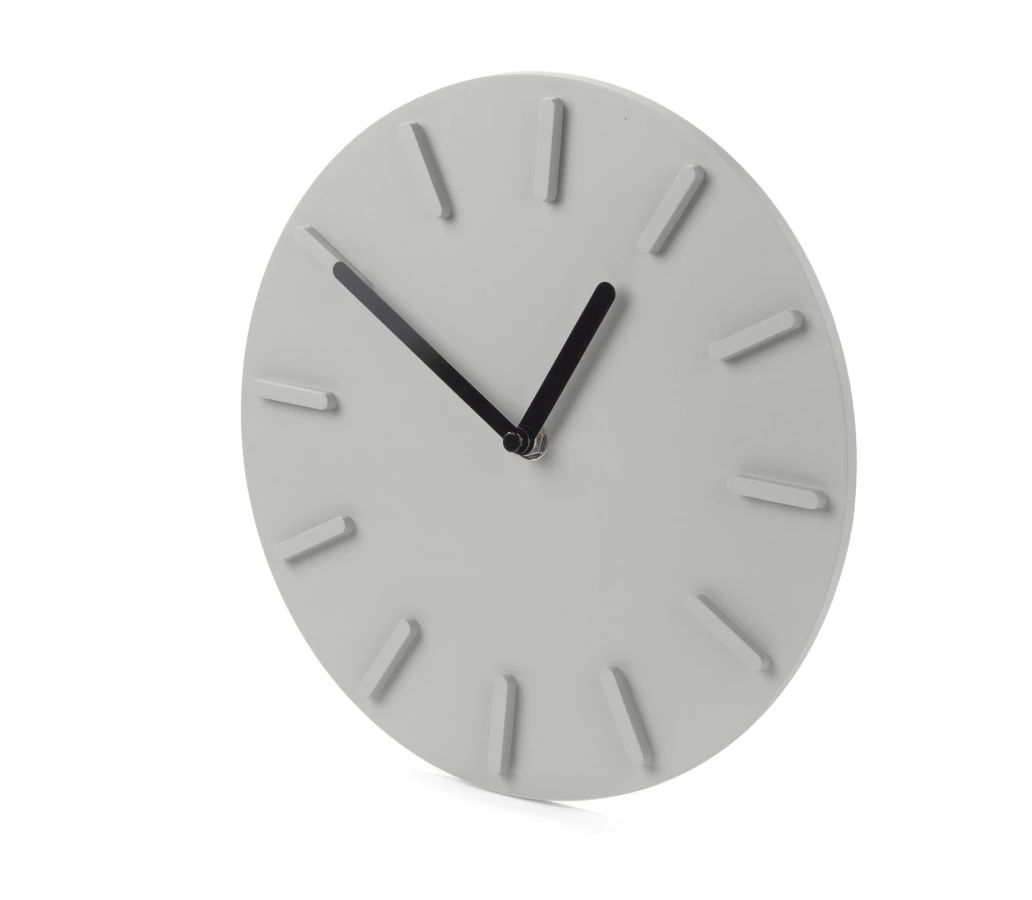Zegar ścienny LUCIA urzeka swoją prostotą i modnym designem. W ofercie w dwóch kolorach: białym i szarym. Wskazówki w kolorze czarnym. Tarcza wykonana z tworzywa. Świetnie wpasuje się w nowoczesne wnętrza.
