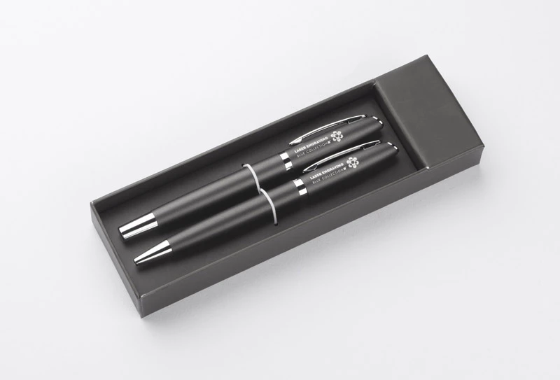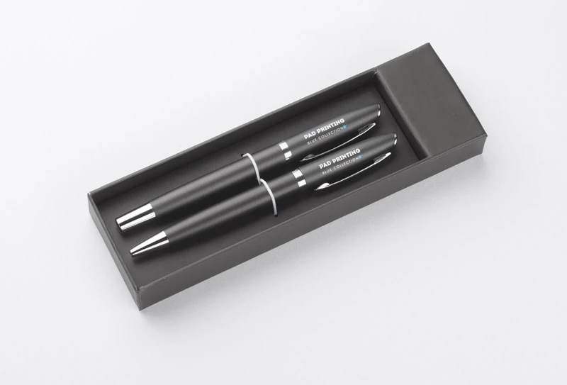 Zestaw piśmienniczy COLORADO składa się z długopisu oraz pióra kulkowego zapakowanych w kartonik dopasowany kolorystycznie do zestawu. Przybory piśmiennicze wykonane z metalu, etui z mocnej tektury wykończonej kolorowym papierem. Jego cechą charakterystyczną są soczyste, modne kolory. Długopis z mechanizmem typu twist. Wkład pióra i długopisu w kolorze niebieskim.