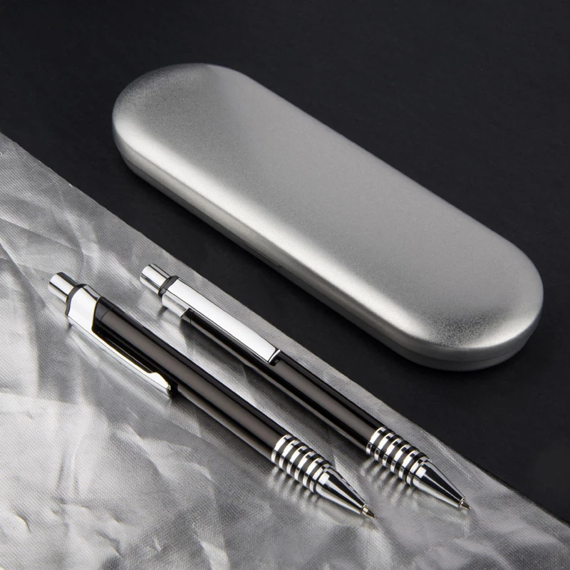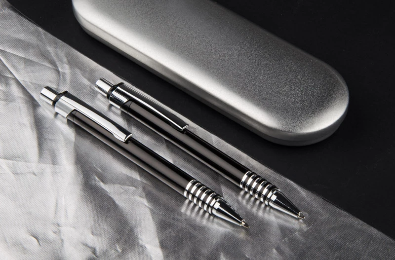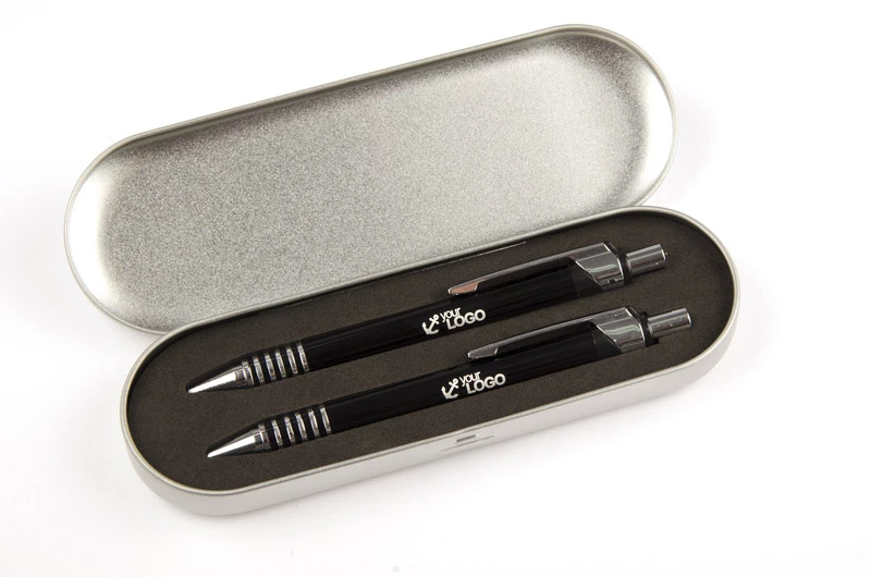 Komplet piśmienniczy DAKOTA zawiera w swoim zestawie długopis i ołówek automatyczny. Całość zapakowana w podręczne, metalowe etui. Logo grawerujemy zarówno na opakowaniu, jak i komplecie.