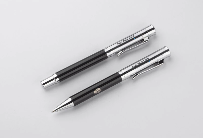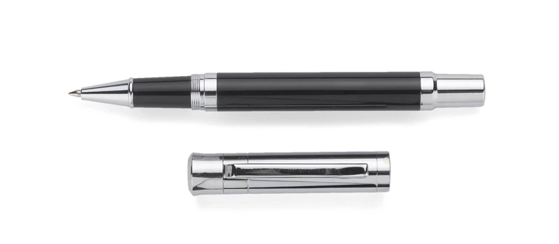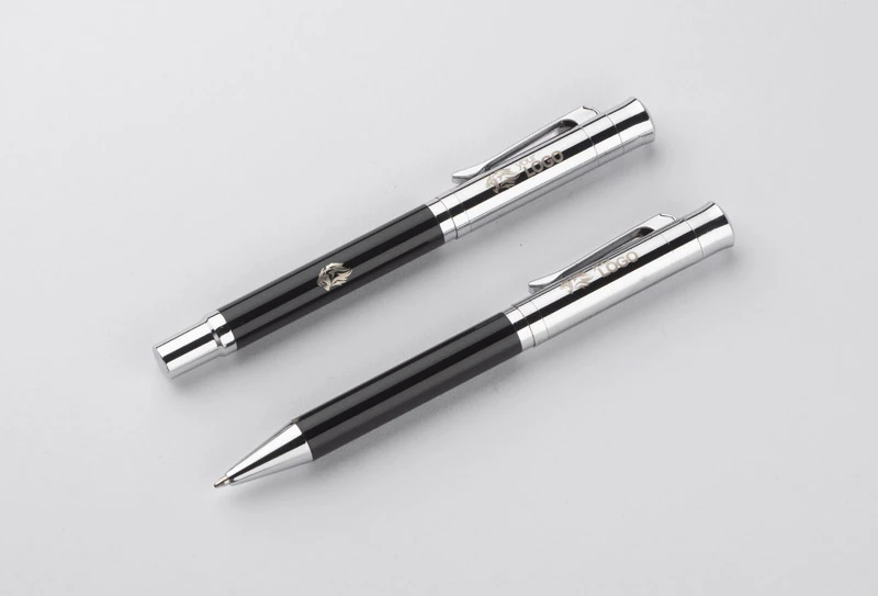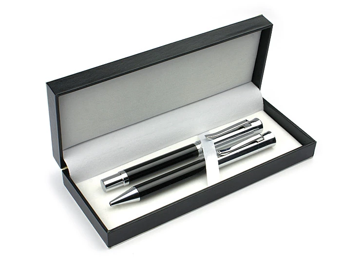 Komplet piśmienniczy WASHINGTON D. C. zawiera metalowy długopis i pióro kulkowe oraz etui wykonane z materiału skóropodobnego (PU). Elementy zostały zapakowane w białe pudełko. Logo grawerujemy na długopisie i piórze.