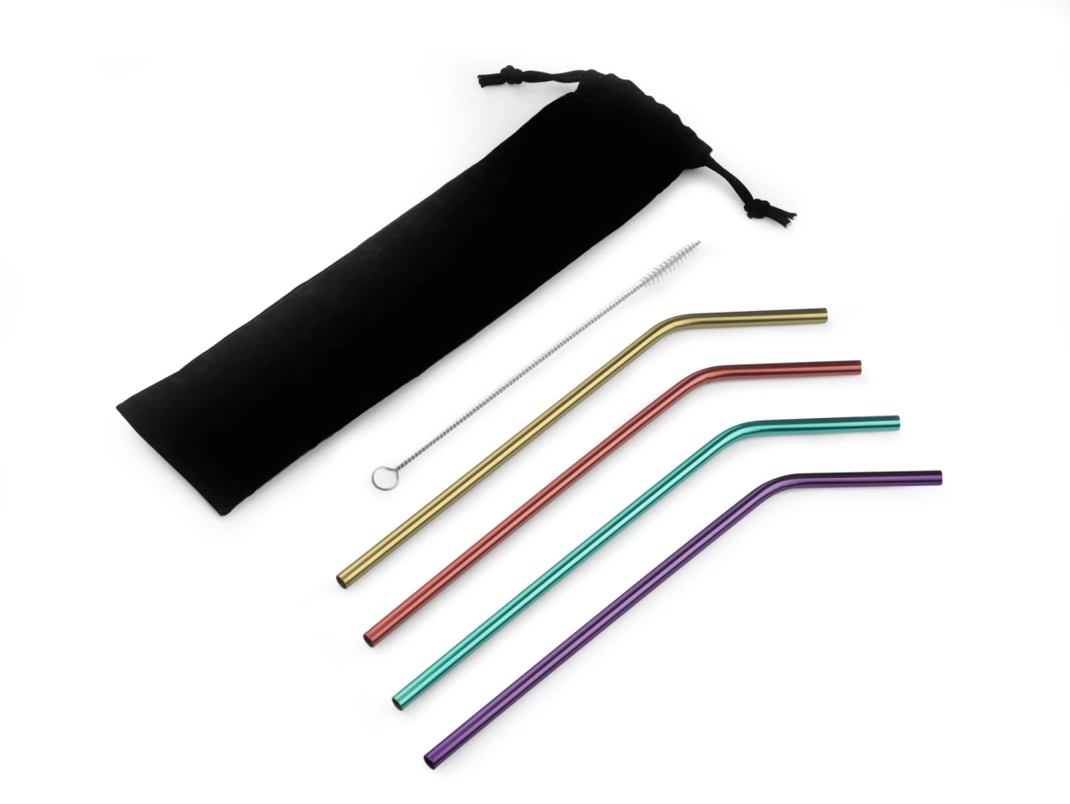 Zestaw słomek ze stali nierdzewnej PARTY to cztery zakrzywione słomki - każda w innym kolorze. Zapakowane w praktyczny, welurowy woreczek, czyścik w zestawie. Idealnie sprawdzą się jako zestaw prezentowy. Świetnie wyglądają w szkle i nadają drinkowi oryginalności. Jest to produkt wielorazowego użytku, dzięki czemu nie przyczyniasz się do zaśmiecania środowiska.