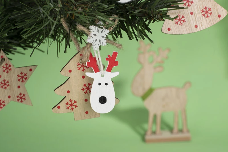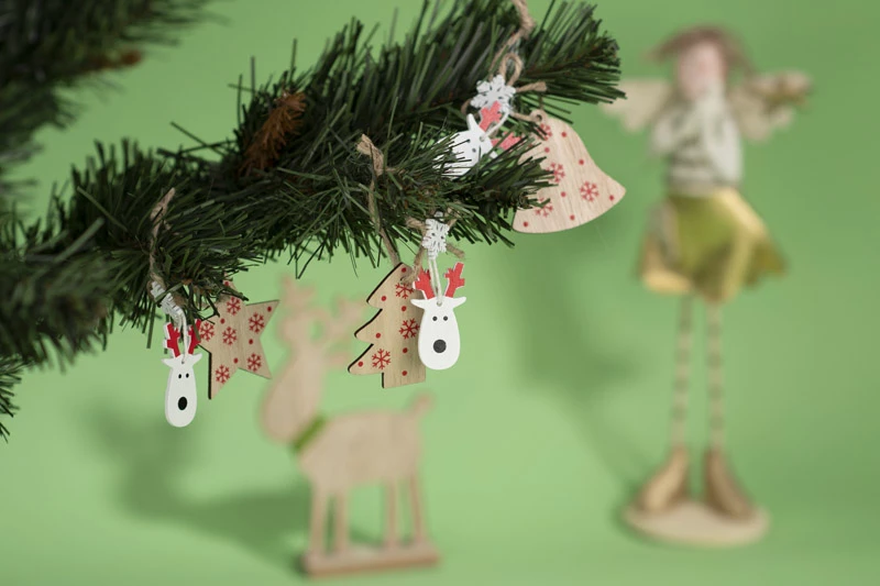 Zestaw FERI składa się z 3 sztuk drewnianych zawieszek o różnych wzorach: gwiazdka, choinka, dzwoneczek. Drewniane zawieszki idealnie wpisują się w trend ekologiczny pasując niemal do każdego wnętrza.